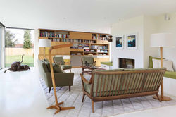 The most striking aesthetic element of this project is the use of Mid Century furniture, that is sympathetically reupholstered in a bold palette of textural fabrics that are largely from British mills, against the crisp cream gallery style back drop. Existing pieces were reworked and mixed with contemporary elements commissioned from Best of British Designer Makers to create a clean, cohesive and individual interior.